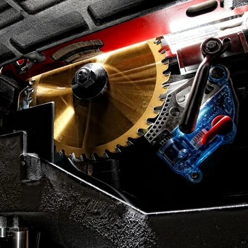 - Patented SawStop Safety System stops on contact with skin.